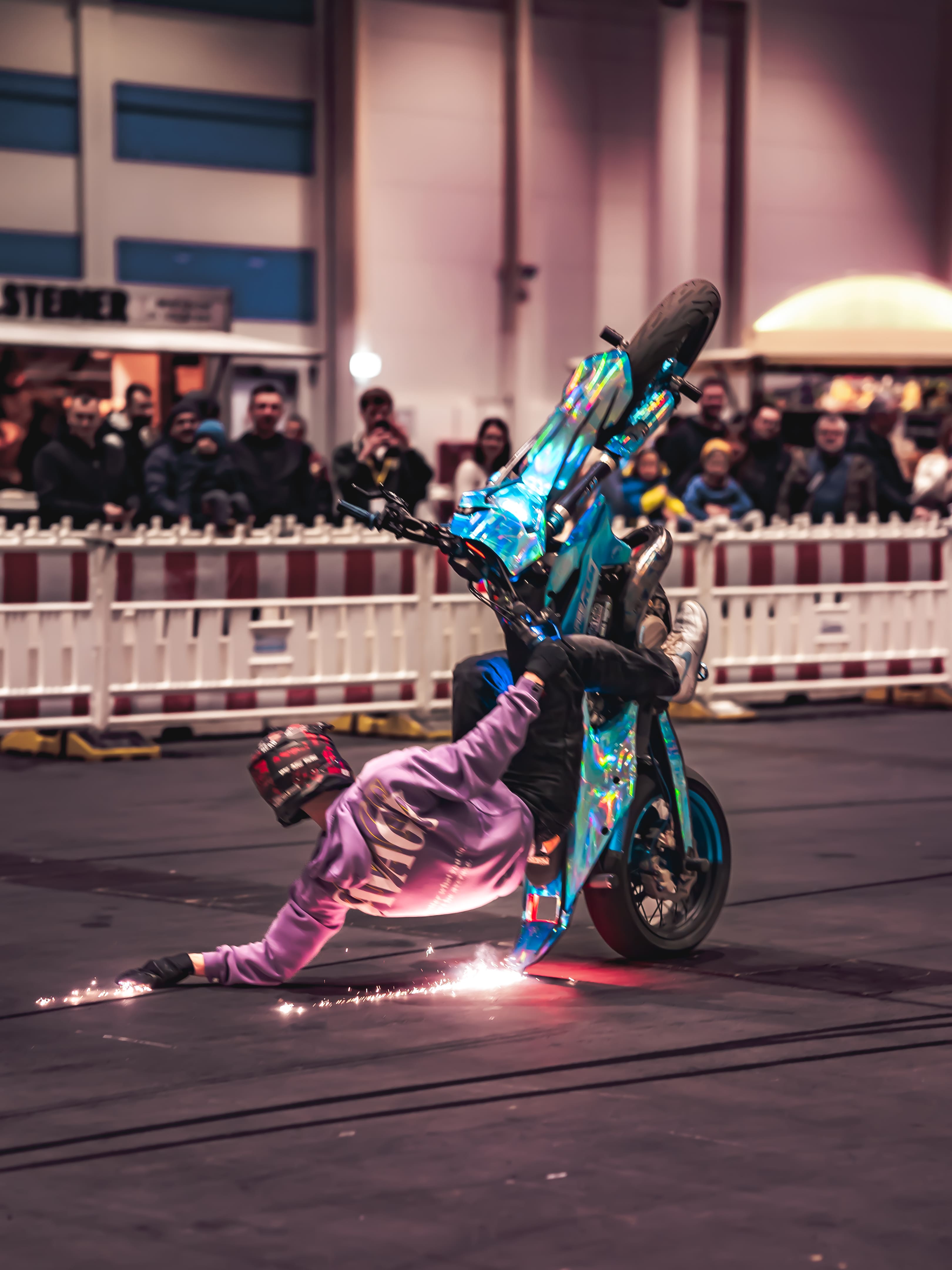 Hey, I'm Titus, 24 years old, and I've been riding motorcycles since I was 16. I got into stunt riding at 18 when I bought my first big supermoto. Since then, I've been constantly testing new boundaries and pushing myself to my limits.